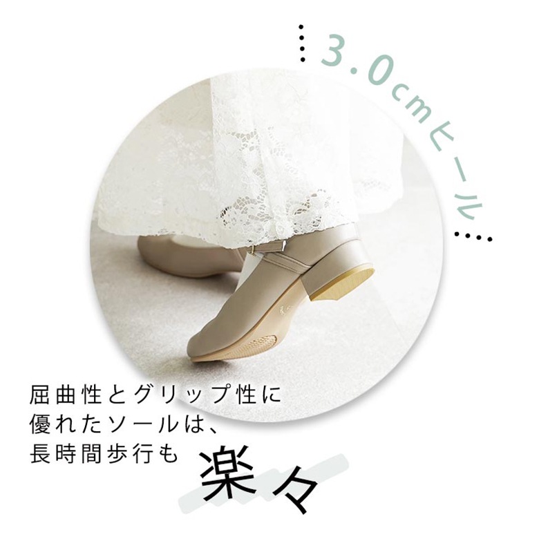 ヒールは3cmの太ヒールだから安定感抜群で長時間歩いても疲れません。