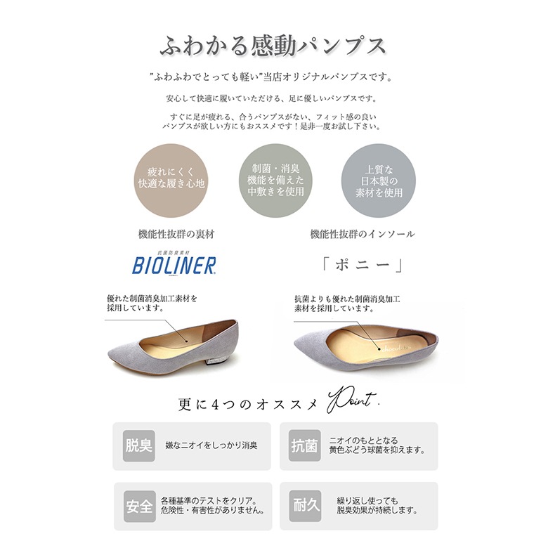 2.5cmのヒールは接地面が広く、安定感も◎。