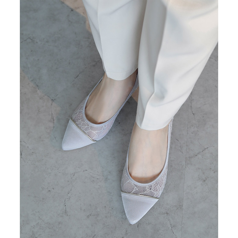 レースの柄と甲のゴールドやシルバーのラインがポイントです。