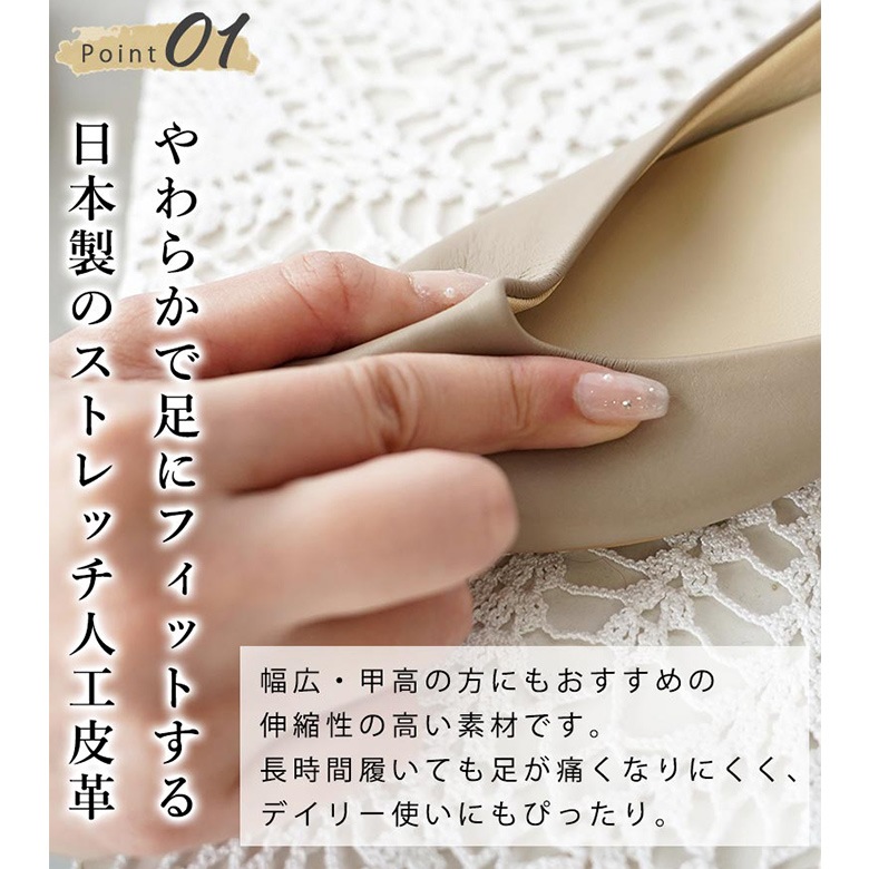 幅広の木型を使用しておりますが、素材がストレッチ素材なので楽ちんです。
