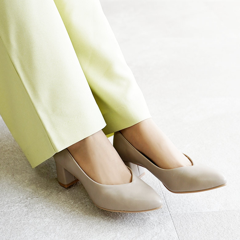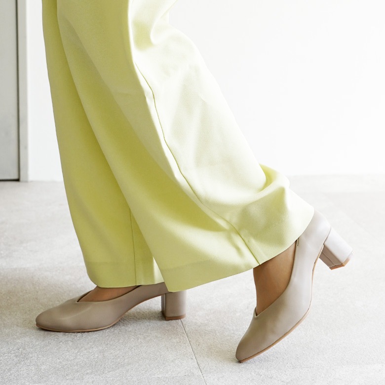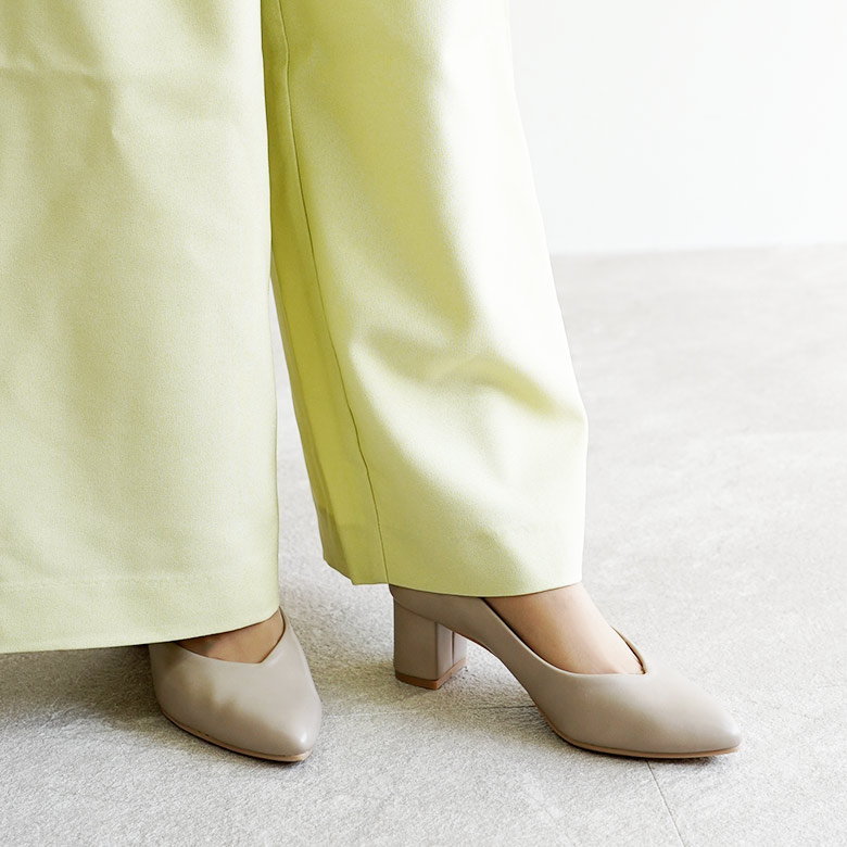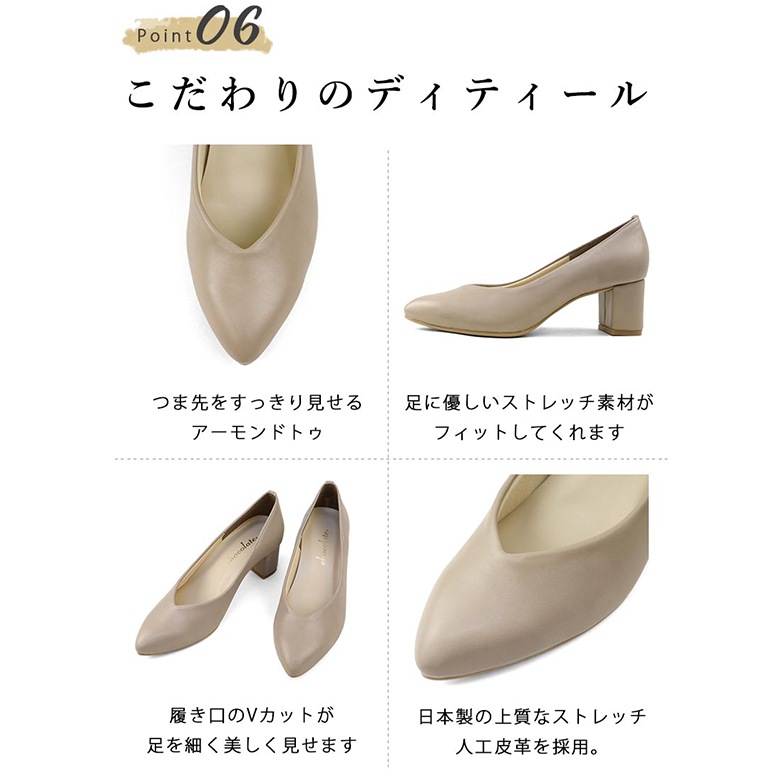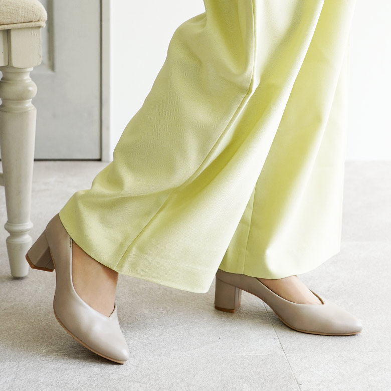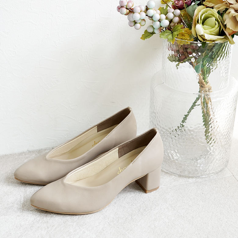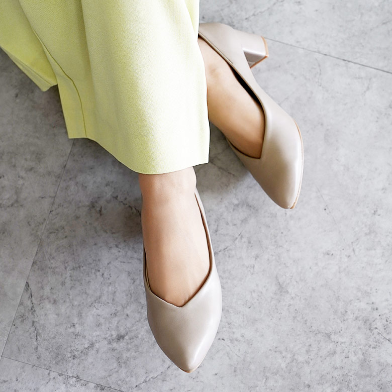 日本製の大人のシンプルなVカットパンプスです。