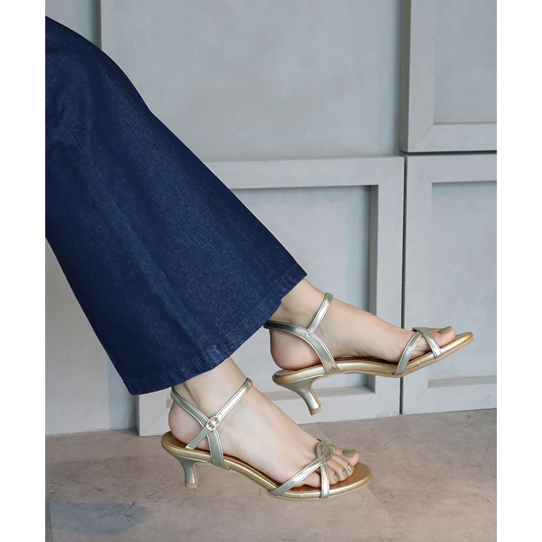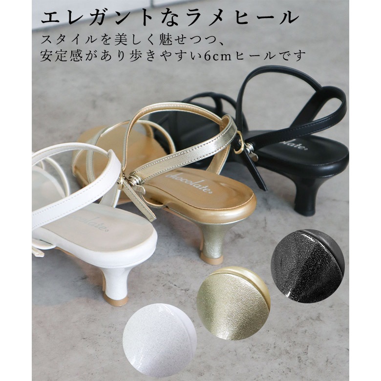 甲のベルトが曲線的な優しいデザインのサンダルです。