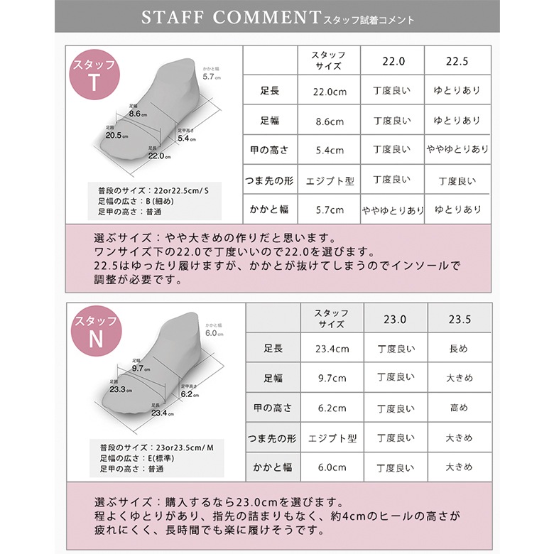 普段24.5cmのスタッフが履いたところ、24.0cmでぴったりでした。