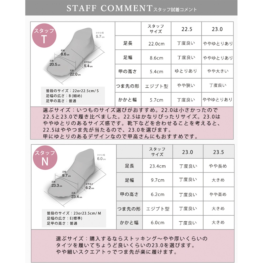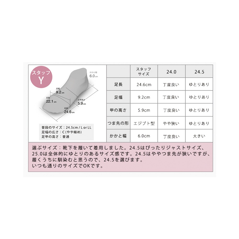 普段24.5cmのスタッフが履いたところ、24.5cmでちょうど良いサイズ感でした。