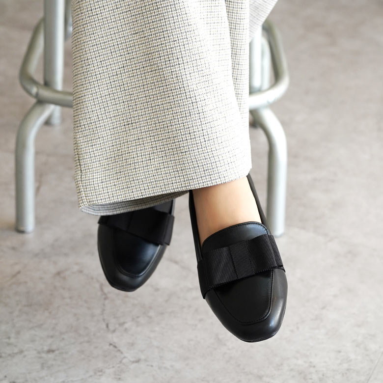 日本製のシンプルなリボン付きローファーです。