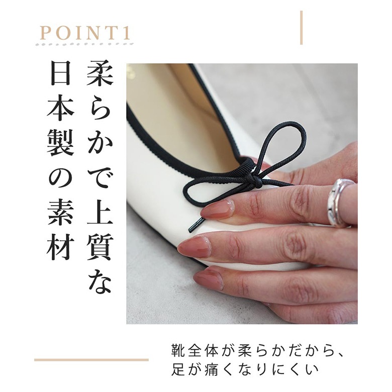日本製のシンプルなラウンドトゥのバレエシューズです。