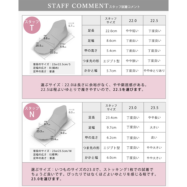 普段24.5cmのスタッフは24.5cmを着用して、ちょうど良いサイズ感でした。