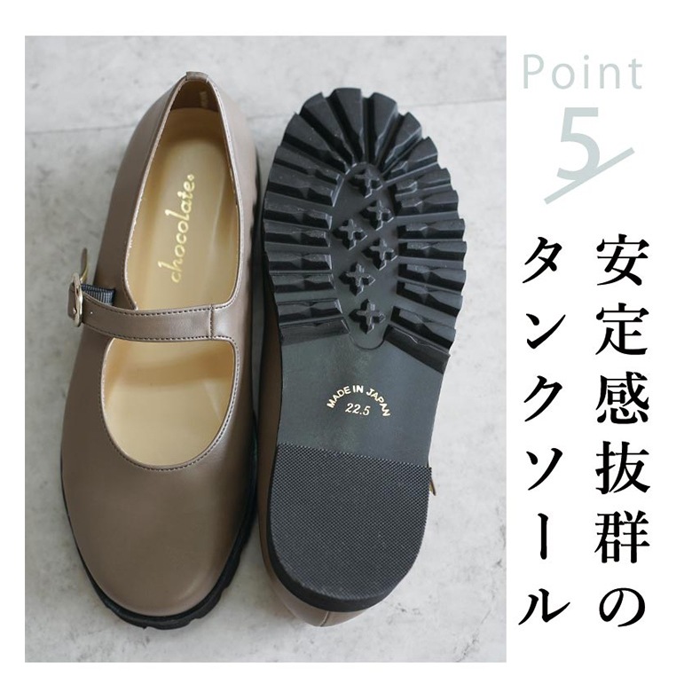 ソールは屈曲性が良くグリップ制も良い安定感抜群の2.5cmヒールのタンクソールも魅力です。