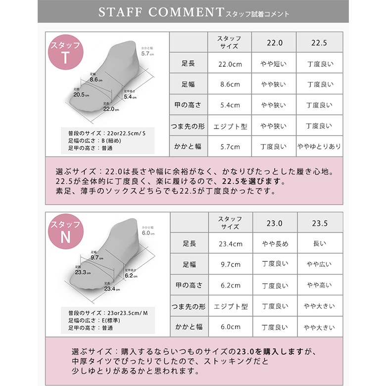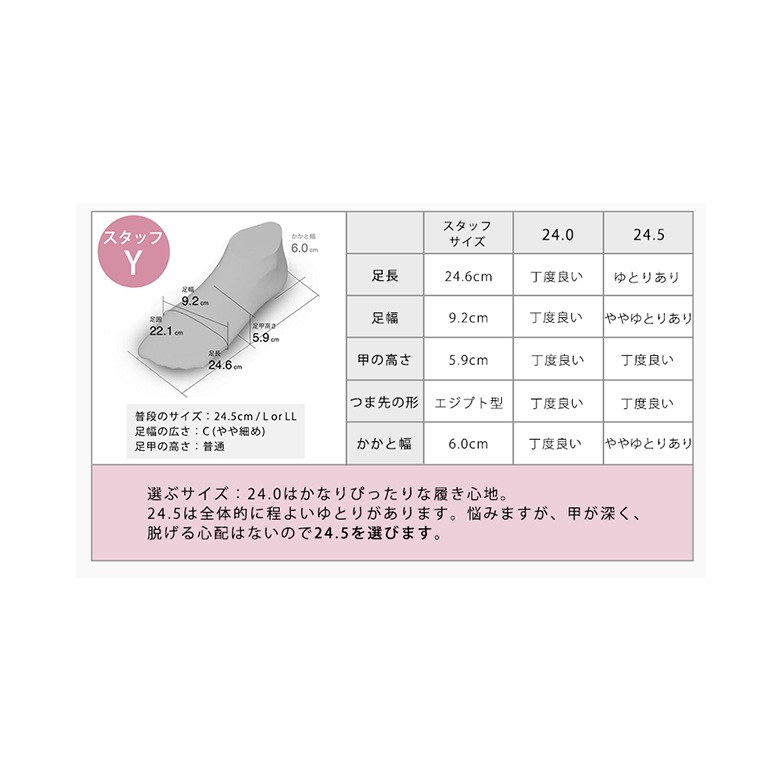 普段24.5cmのスタッフは24.5cmを着用して、ちょうど良いサイズ感でした。