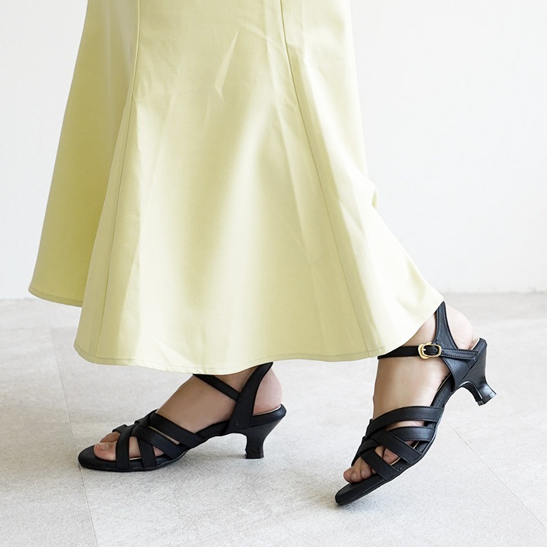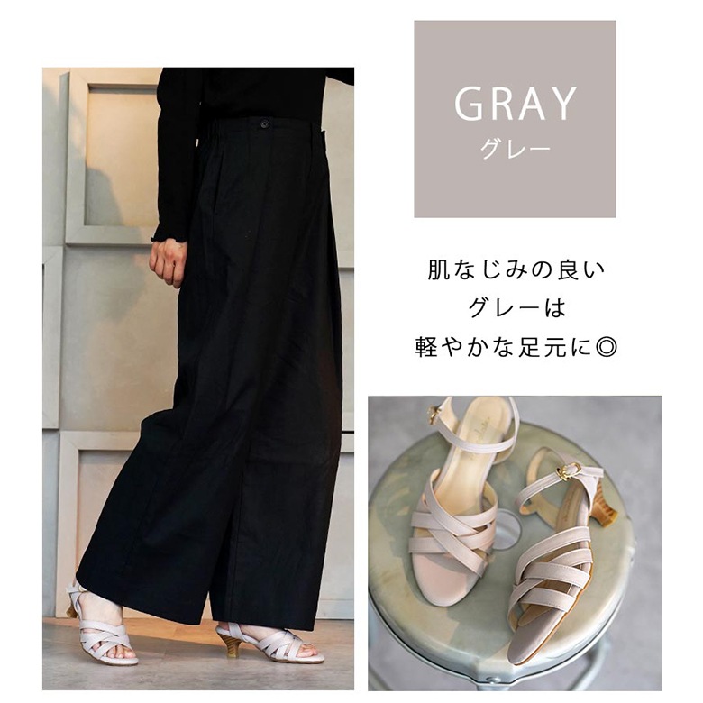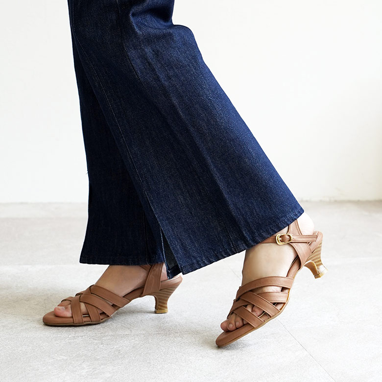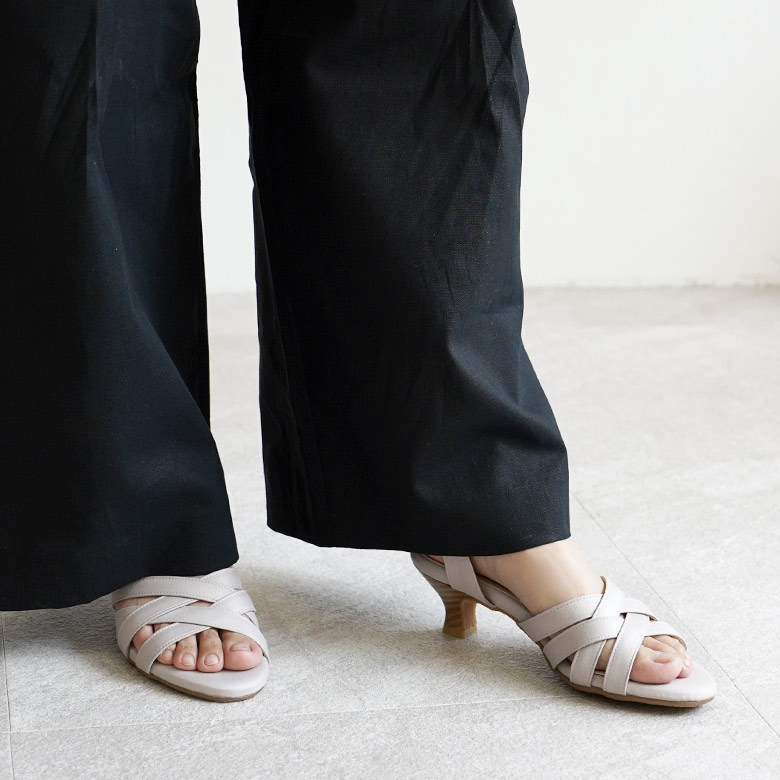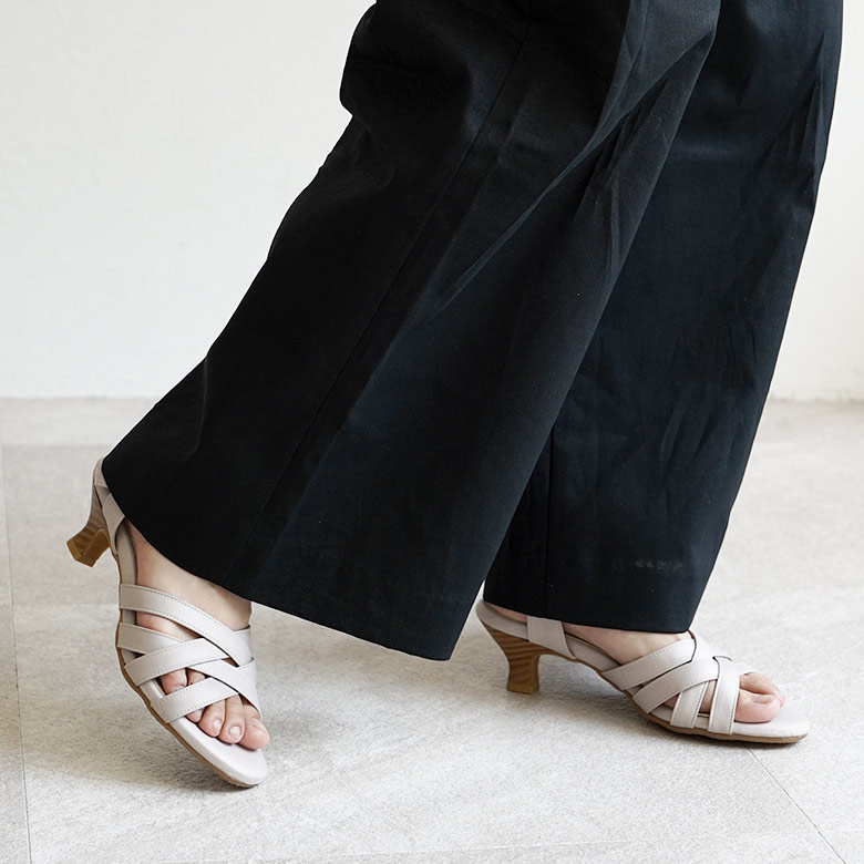 キャンバス素材が夏らしく、甲の4本のベルトが魅力です。