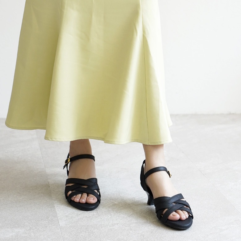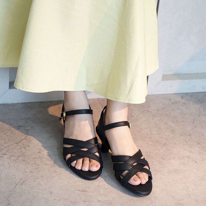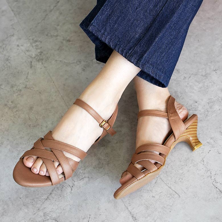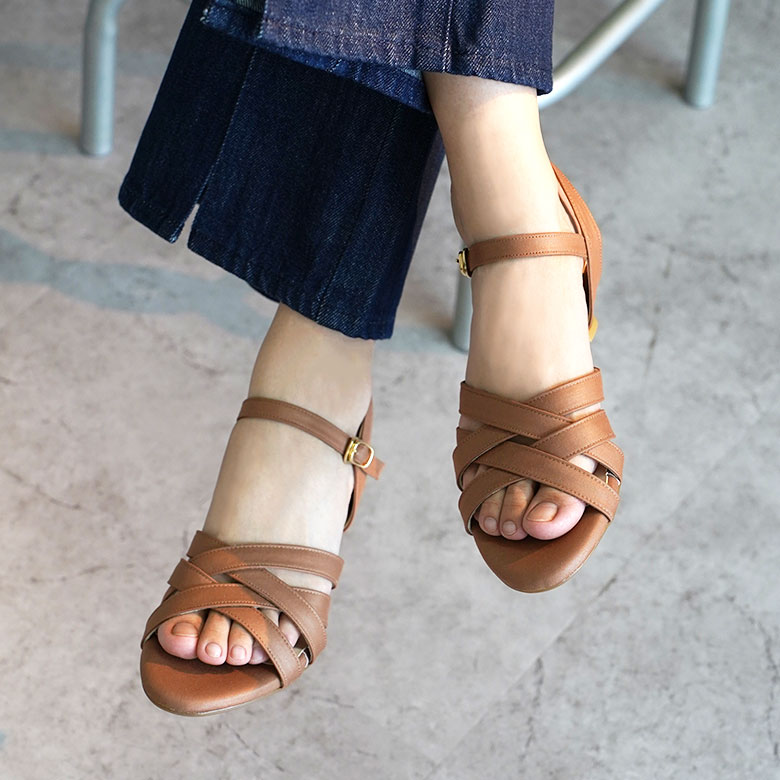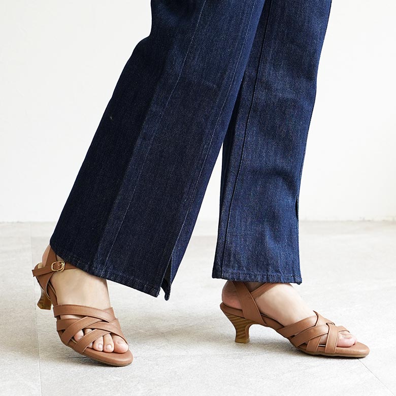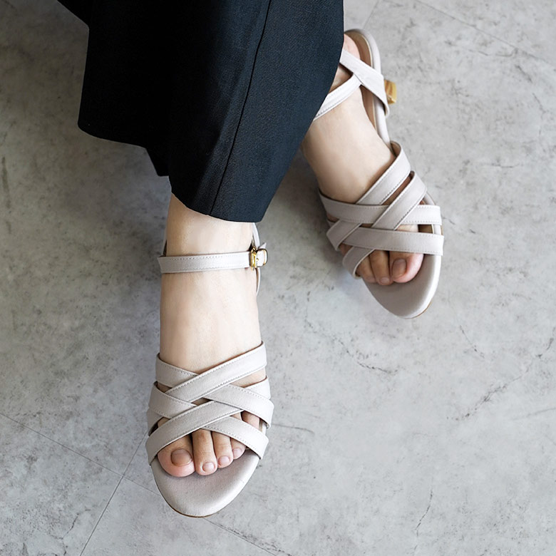 キャンバス素材が夏らしく、甲の4本のベルトが魅力です。