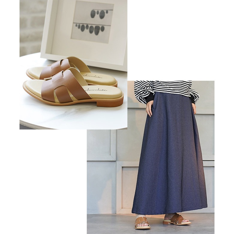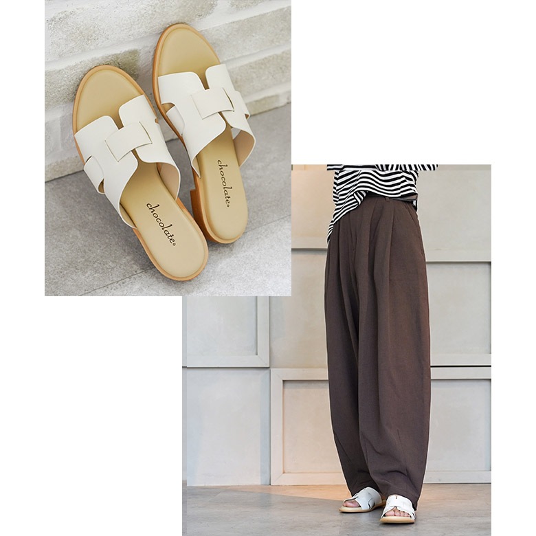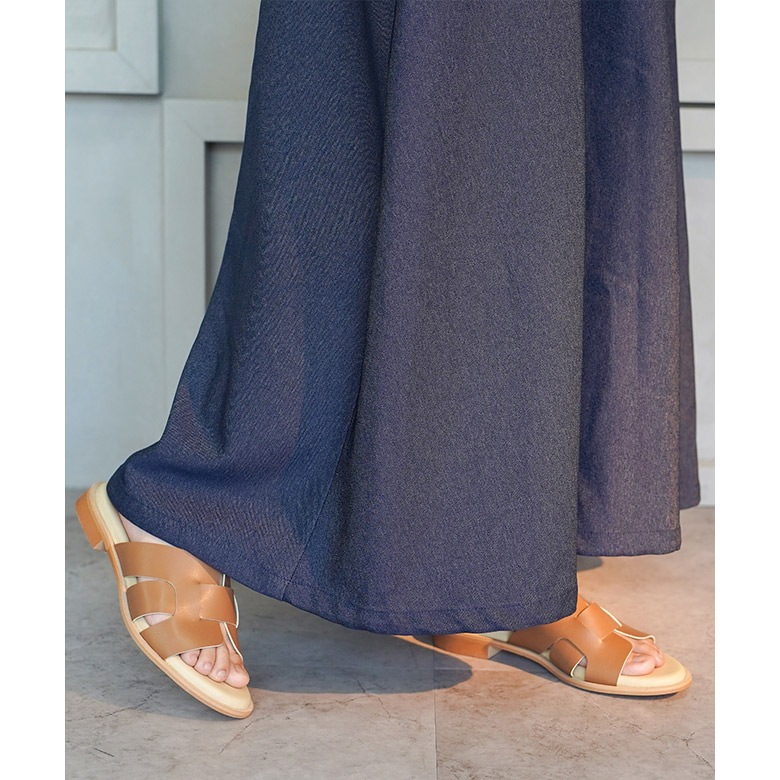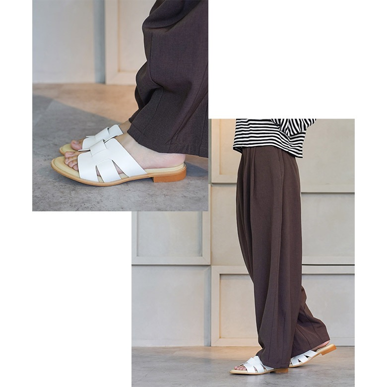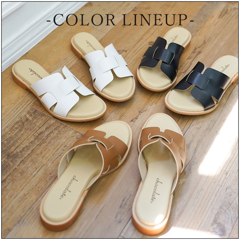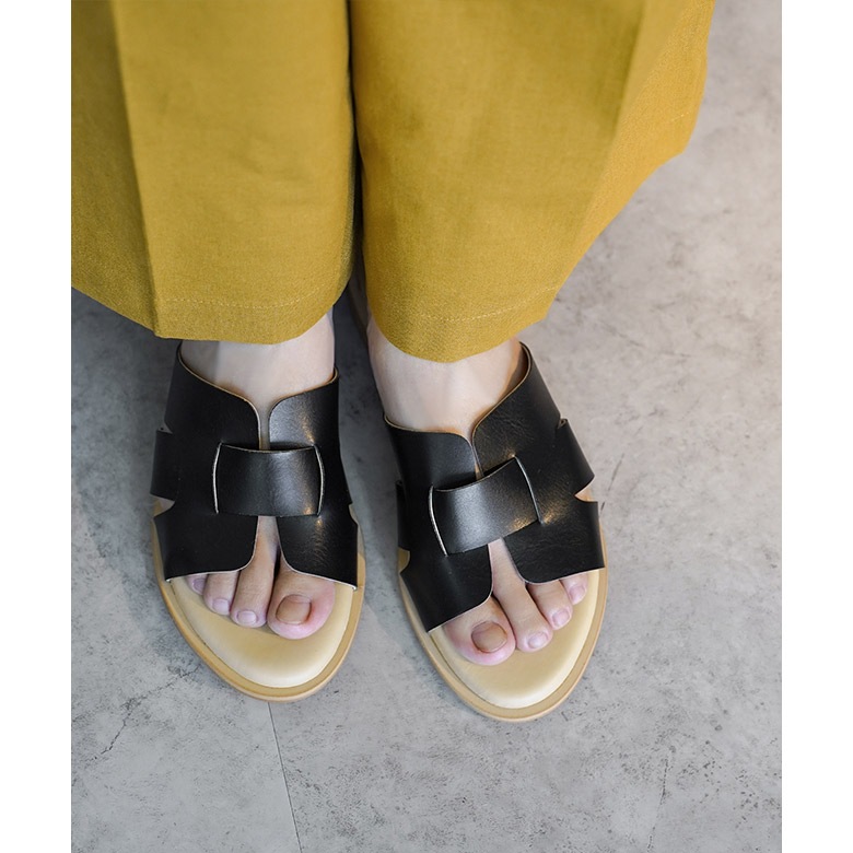 ラウンドトゥのシンプルなぺたんこミュールです。
