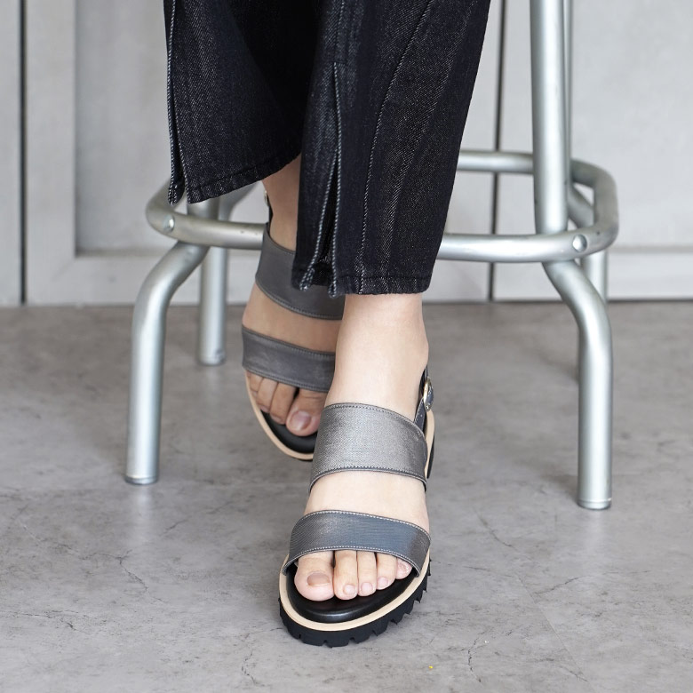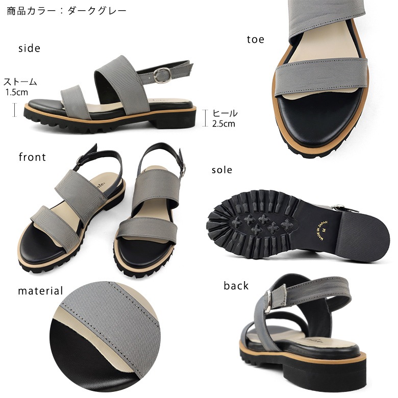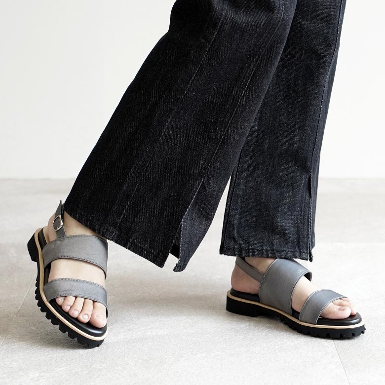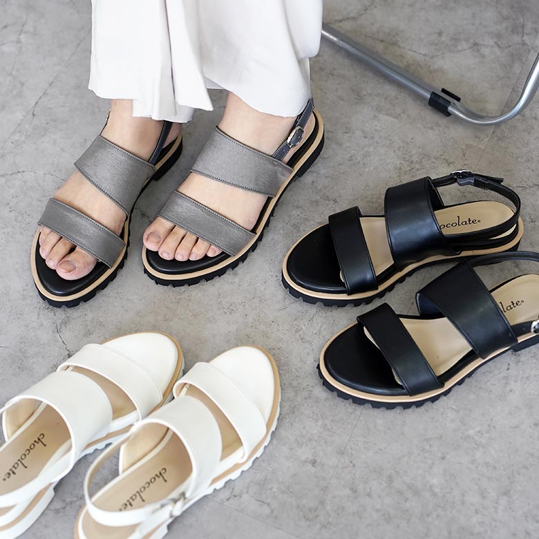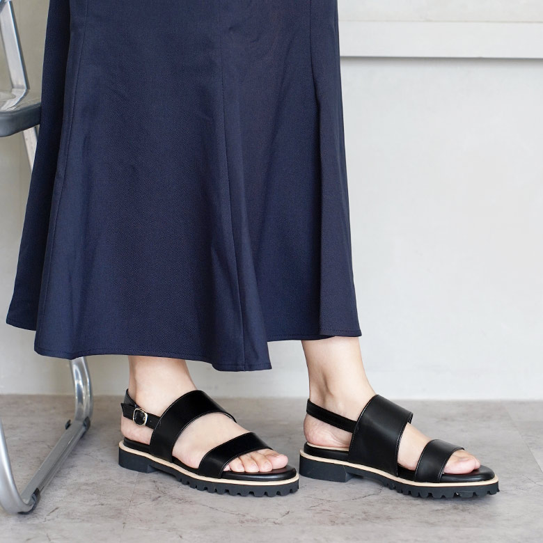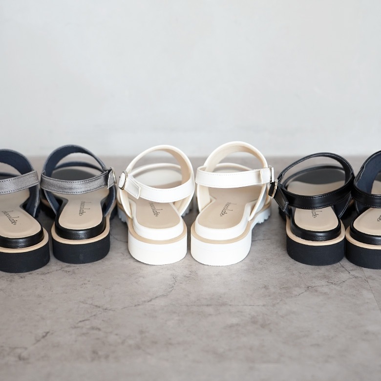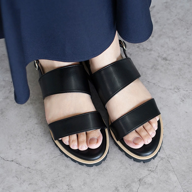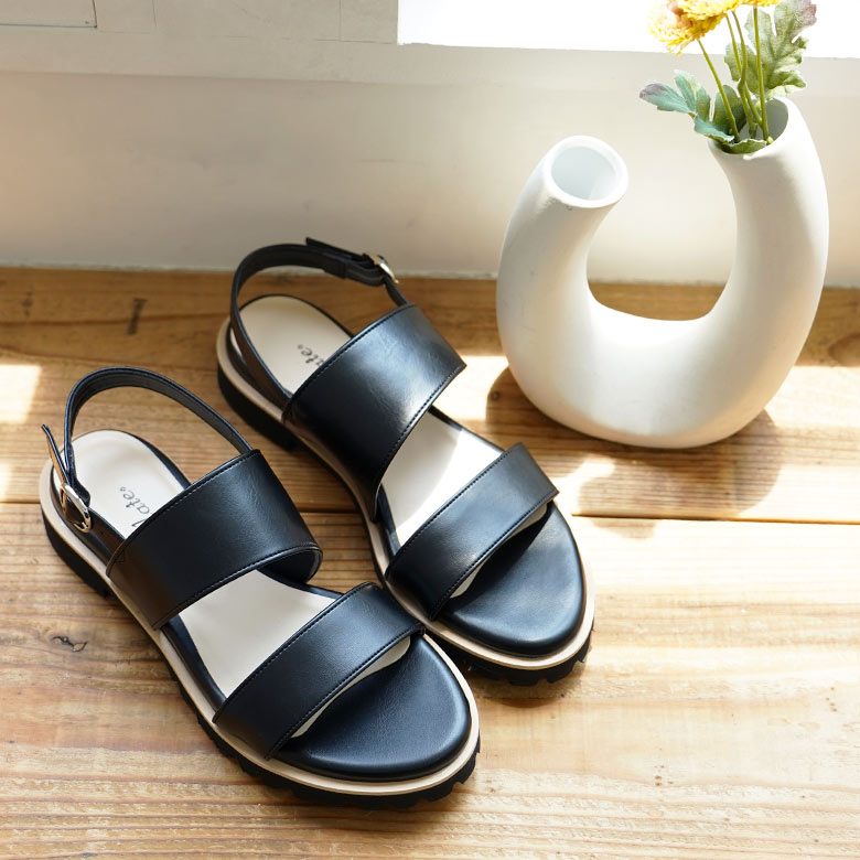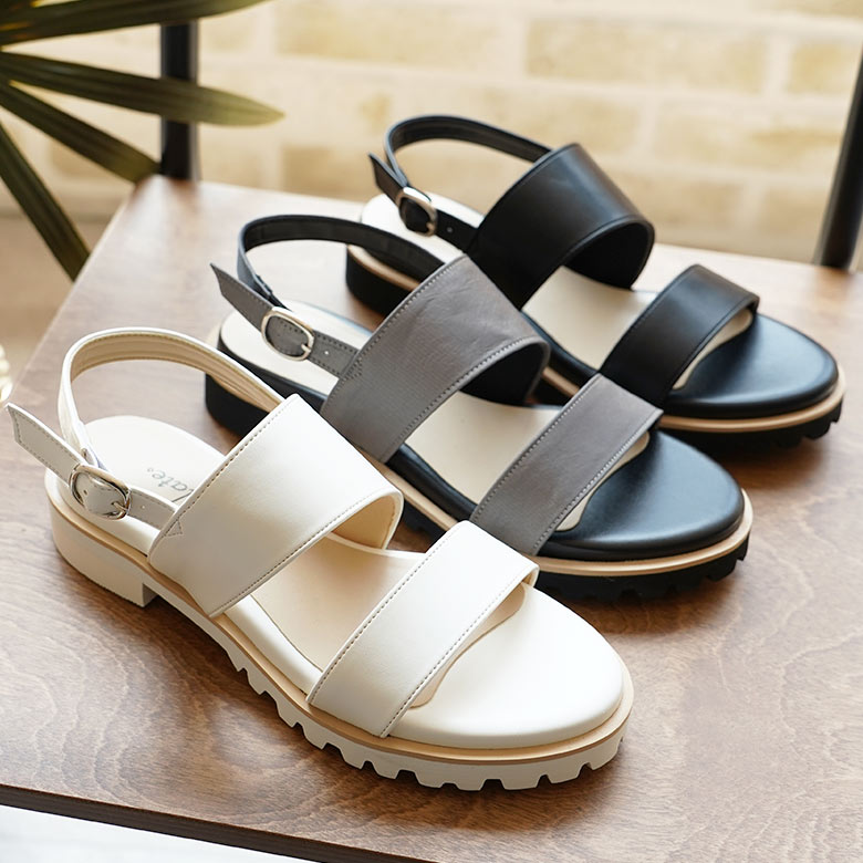 ラウンドトゥのぺたんこカジュアルサンダルです。