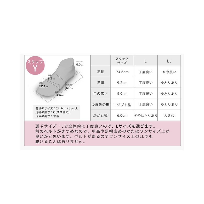 普段24.5cmのスタッフが履いたところ、Lでぴったりでした。