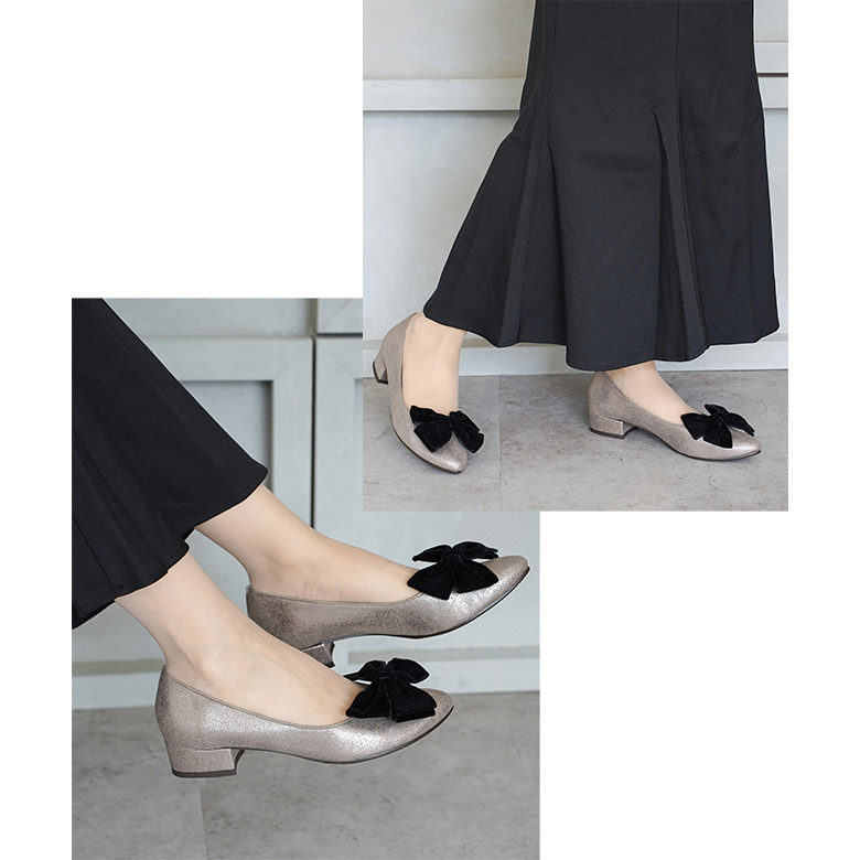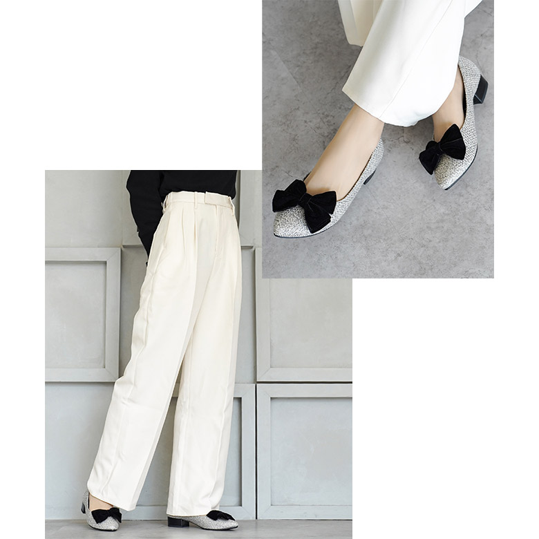 2wayで履くことができ、お手持ちのパンプス等にもリボンを付けて楽しんでいただけます。