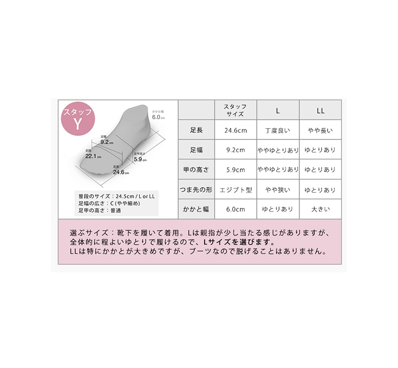 普段23~23.5cmのスタッフが履いたところ、Mでぴったりサイズでした。