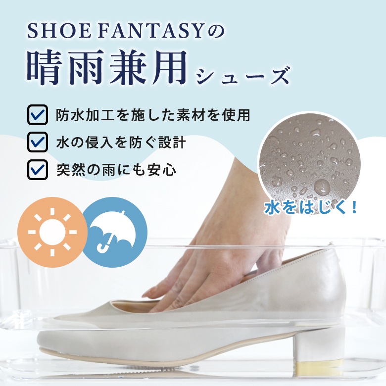 急な雨の日も安心して履いていただけます。