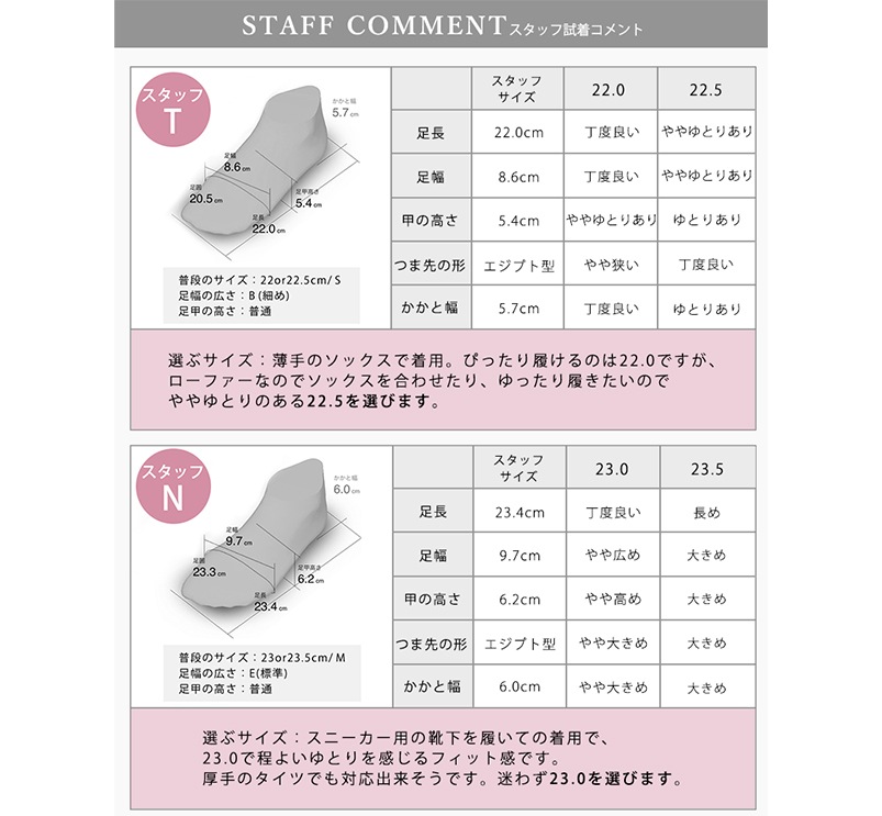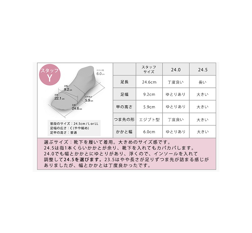 普段24.5cmのスタッフが履いたところ、24.0cmで丁度良いサイズ感でした。